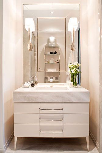 These decorative sconces look beautiful mounted to the mirror wall behind the vanity.